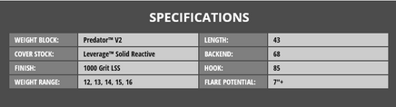 Paired with this new system is the proven Predator V2 core. Used in the legendary Jackal Ghost and the Alpha Jackal used by Wesley Low to shoot 900, the Predator V2 is ideal in heavy oil conditions when a high performance, asymmetrical core is necessary. The low RG and high differential give a fast spinning and dynamic core design, capable of huge amounts of flare.